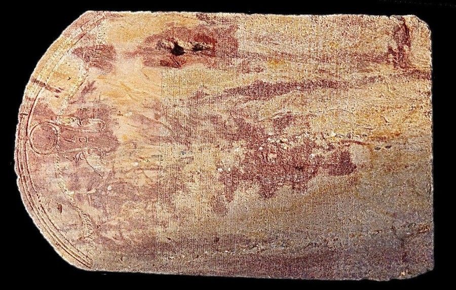 Die 1,27m große Stele ist aus Sandstein gefertigt, 83 cm breit und ca. 48 cm dick. Sie hat oben einen halbrunden Kopfbereich, in dem eine geflügelte Sonnenscheibe zu sehen ist, von der sich zwei königliche Uräusschlangen herabschlängeln, die die Rote und die Weiße Krone von Ober- und Unterägypten tragen. Zwischen ihren Köpfen stehen die beiden Hieroglyphen di und ankh, die für das Geben des Lebens stehen und die vom Grabungsteam in dieser Pressemitteilung mit „Er, dem Leben gegeben wurde“ übersetzt werden.