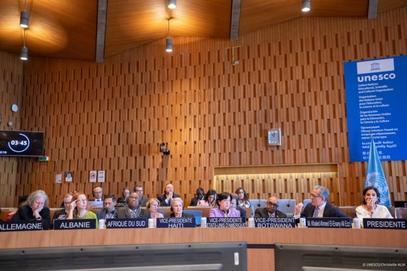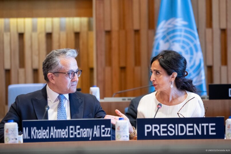 Im November wird ein neuer/eine neue Generaldirektor/in für die UNESCO (Organisation der Vereinten Nationen für Bildung, Wissenschaft und Kultur) gewählt werden, da die bisherige Direktorin, die Französin Audrey Azoulay, nach zwei vierjährigen Amtszeiten nicht mehr antreten darf. Für diesen Posten schlägt satzungsgemäß der UNESCO-Exekutivrat (Vorstand) eine Person vor, die dann von der Generalversammlung bestätigt werden muss. Überraschend deutlich hat sich nun dieser Exekutivrat für den Ägypter Khaled El-Enany ausgesprochen. 55 der 57 Stimmen entfielen auf ihn, nur zwei Stimmen auf den Gegenkandidaten Firmin Edouard Matoko aus dem Kongo, obwohl dieser ein langjähriger Mitarbeiter bei der UNESCO, El-Enany dagegen ein Neuling ist.
